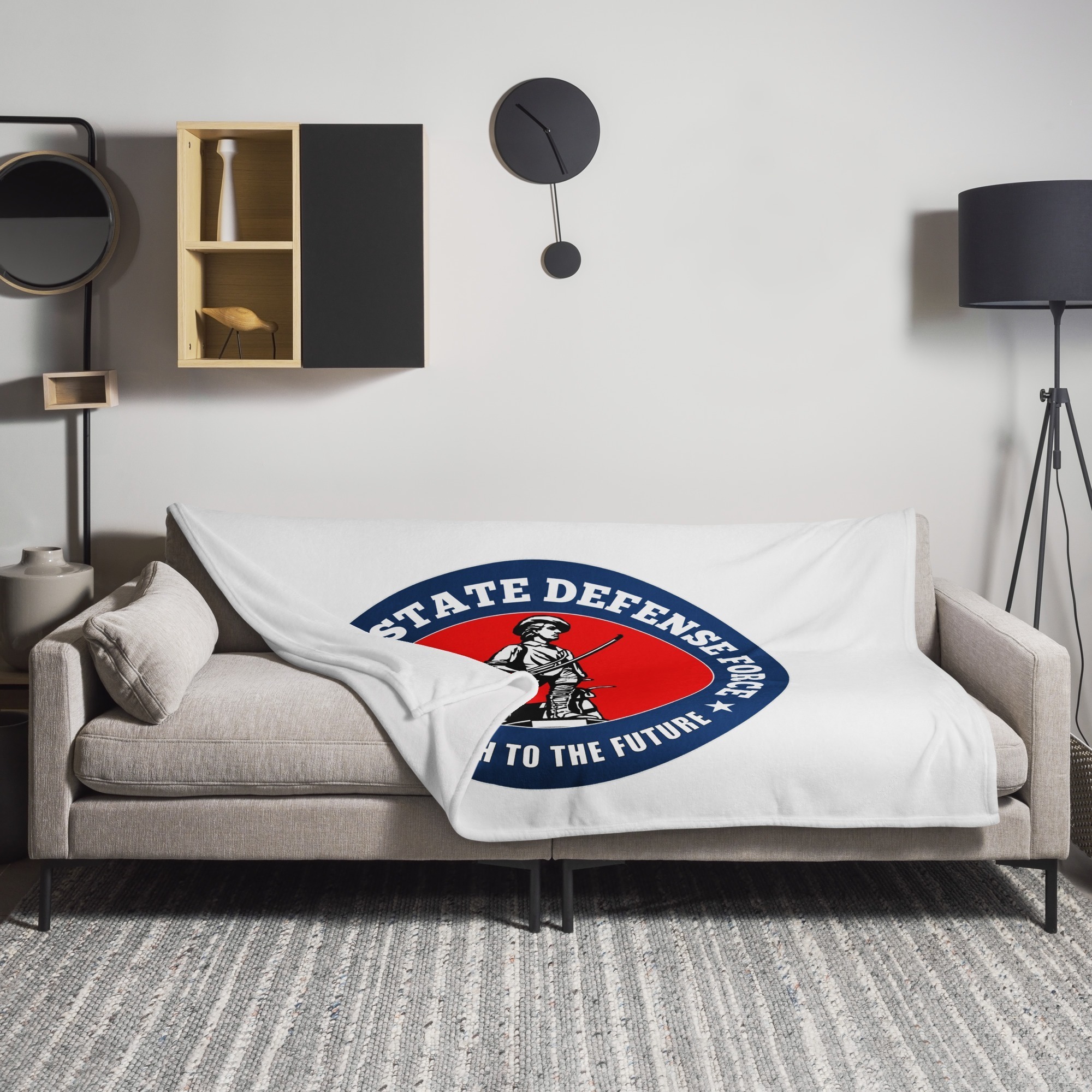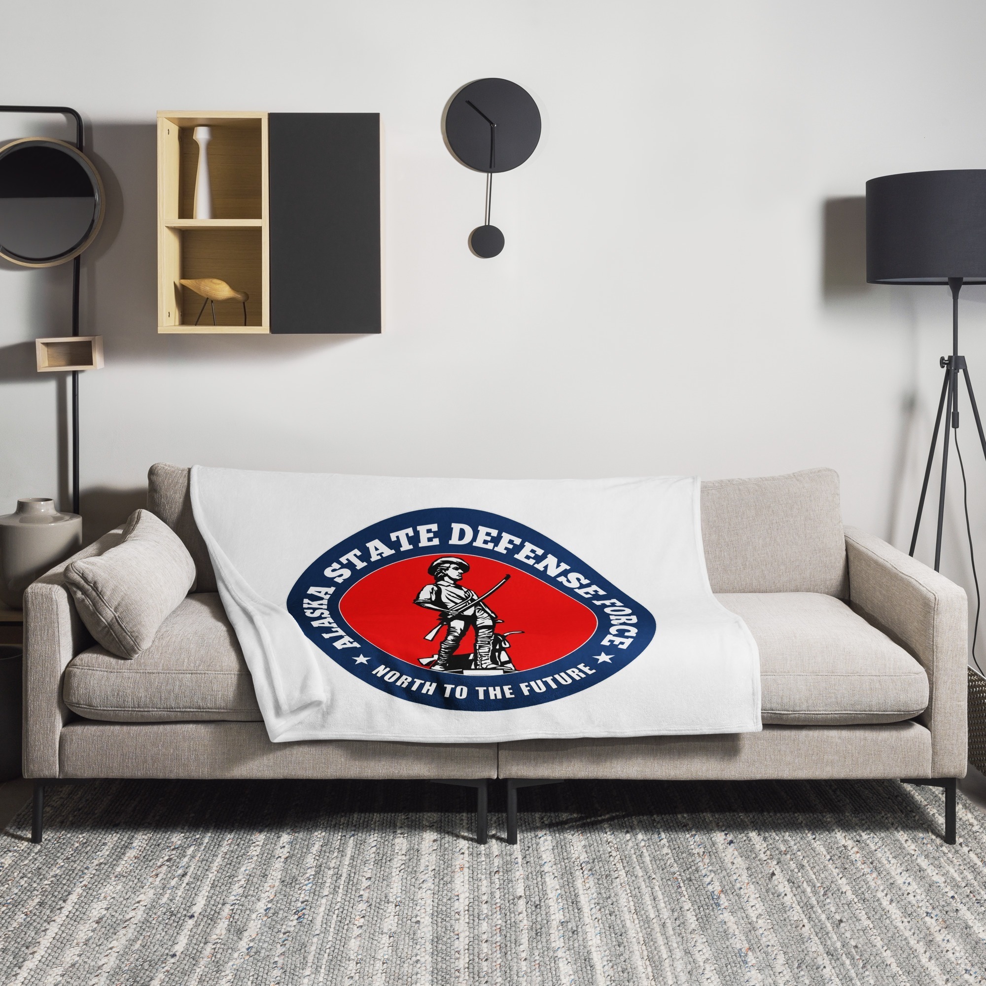 We designed a custom Alaska State Defense Force throw blanket that features Our Bold Minuteman Graphic with The Alaska State Defense Force motto embedded into it.