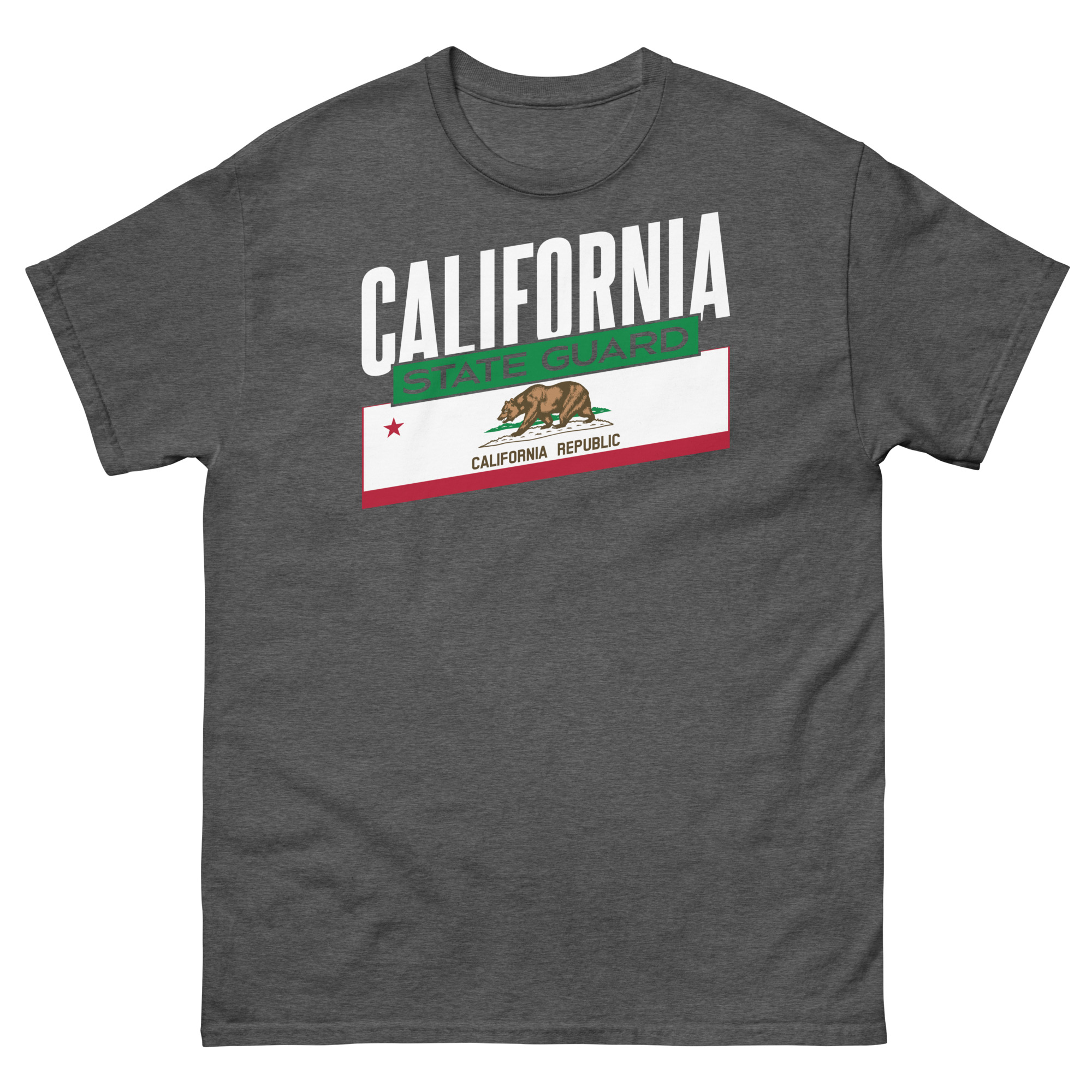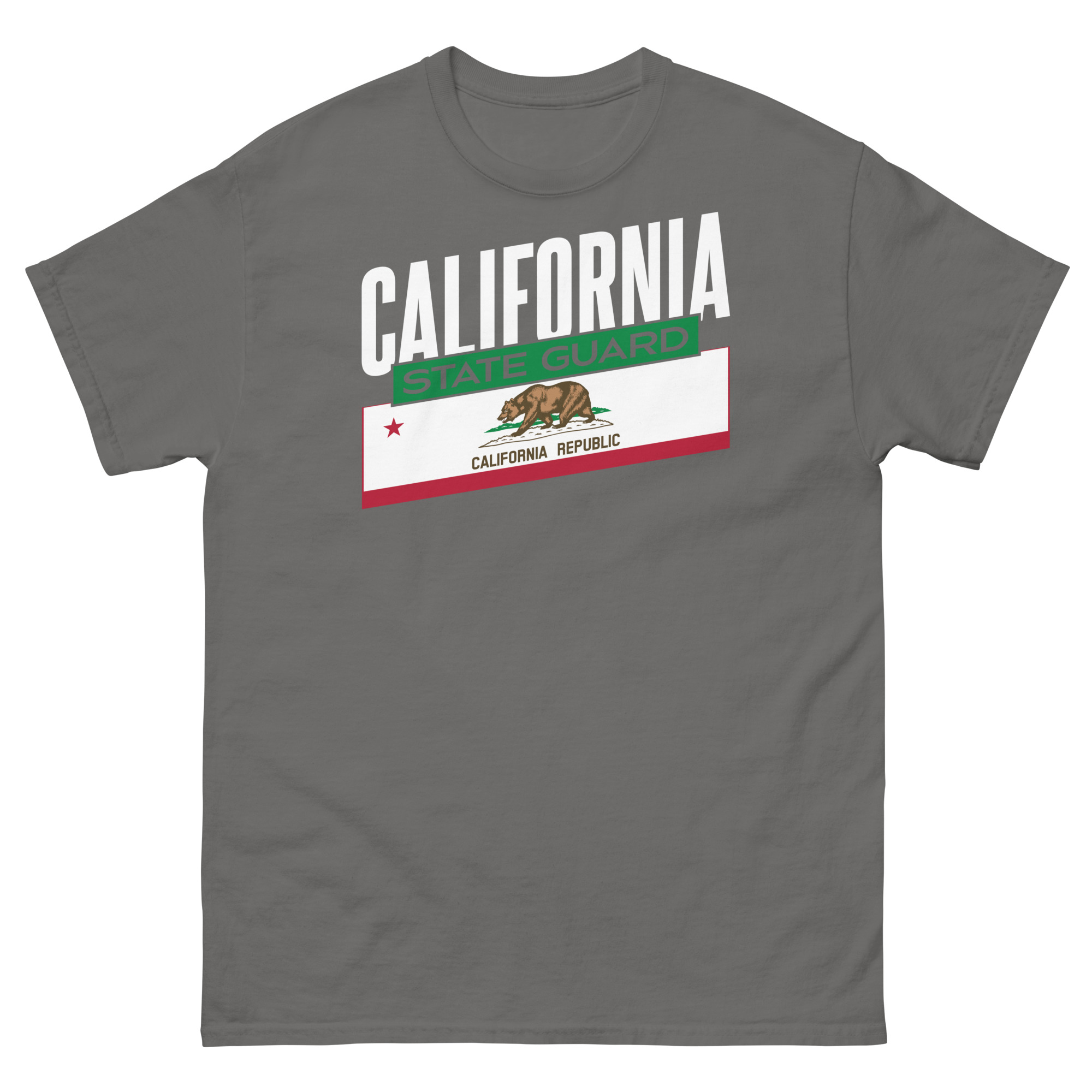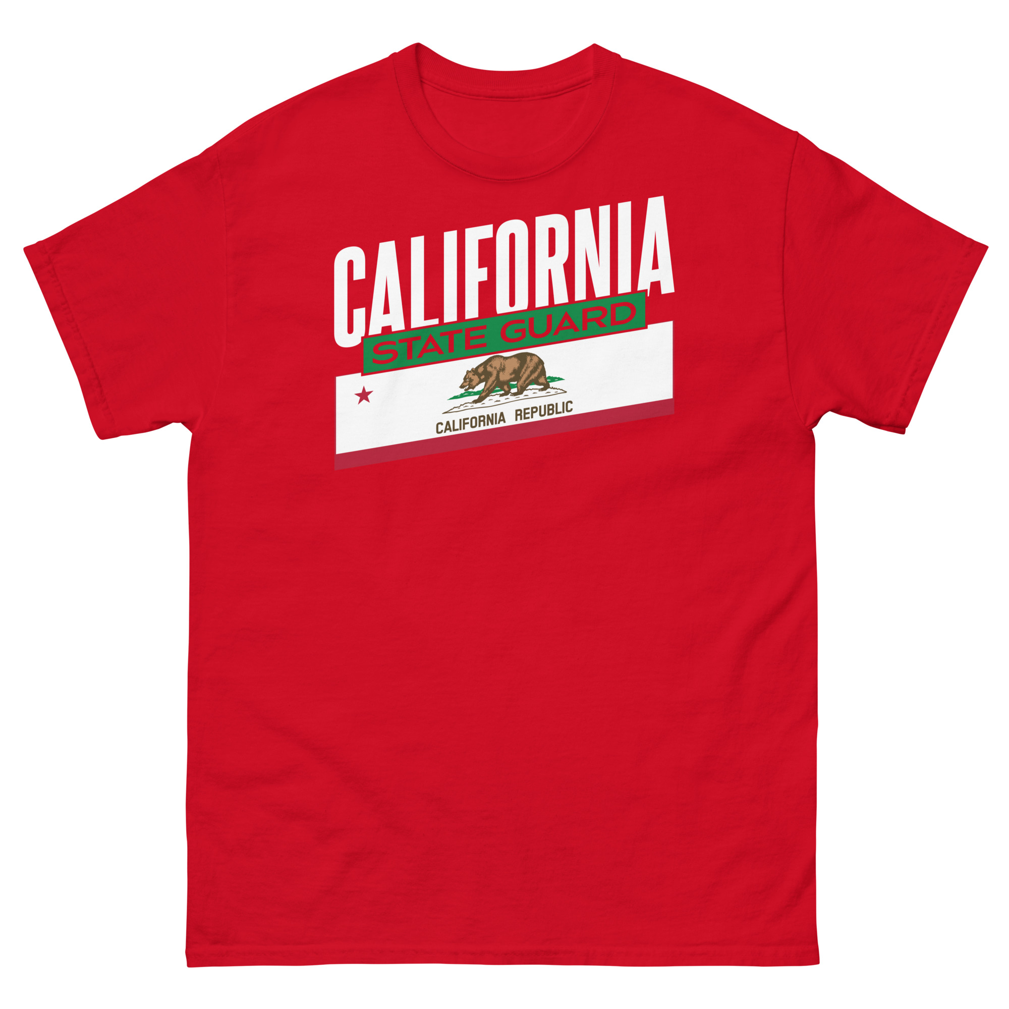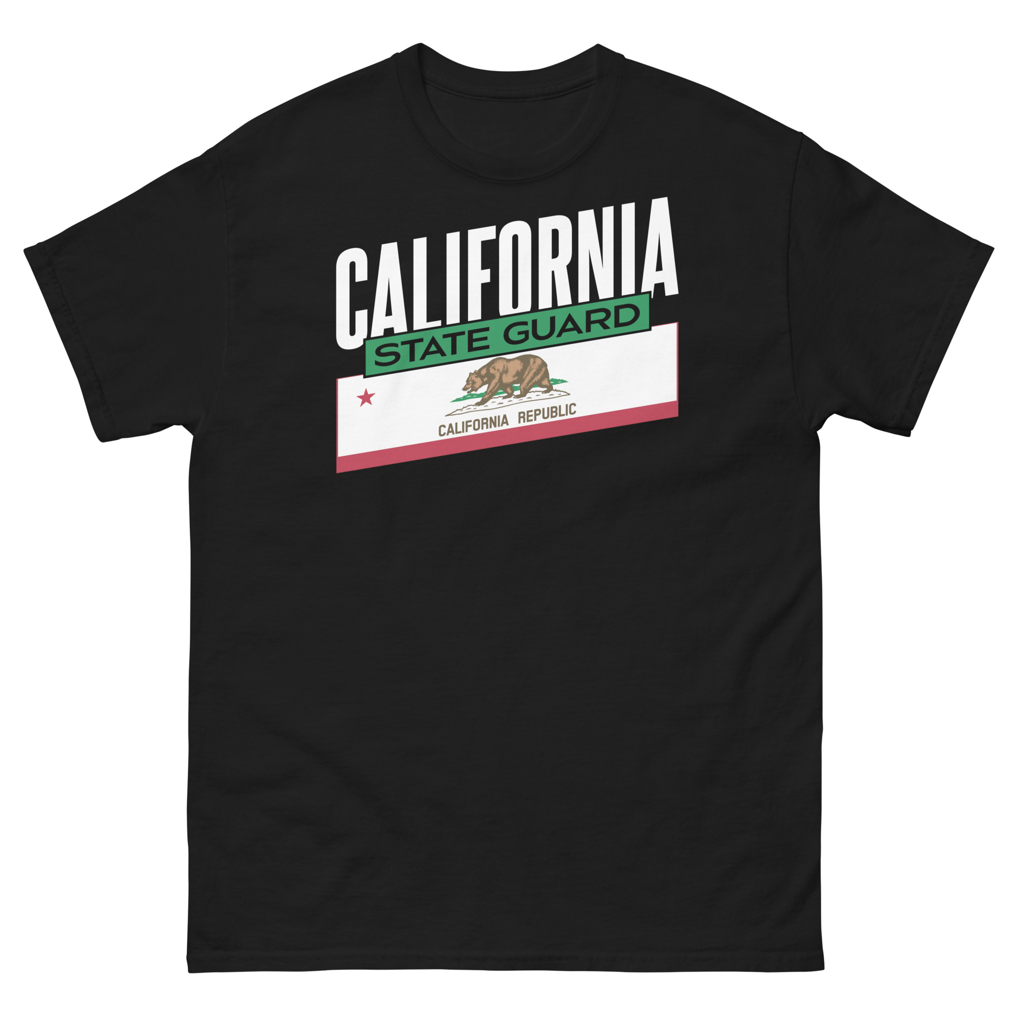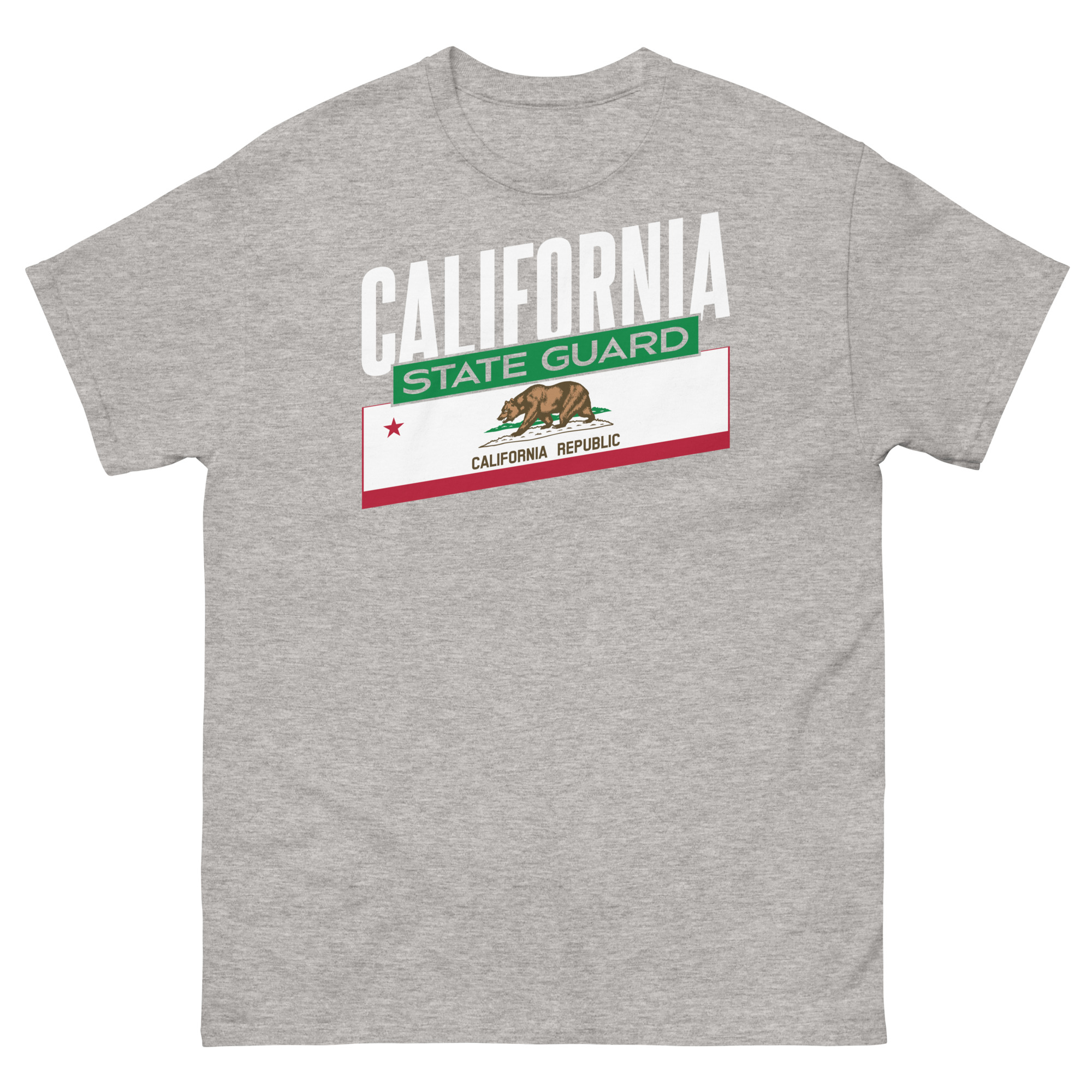 Our new design, California Proud, features California and the State Flag in Big Bold Letters and Graphics. This shirt has been designed for the troops of the California State Guard to express their pride in service to the great state of California.