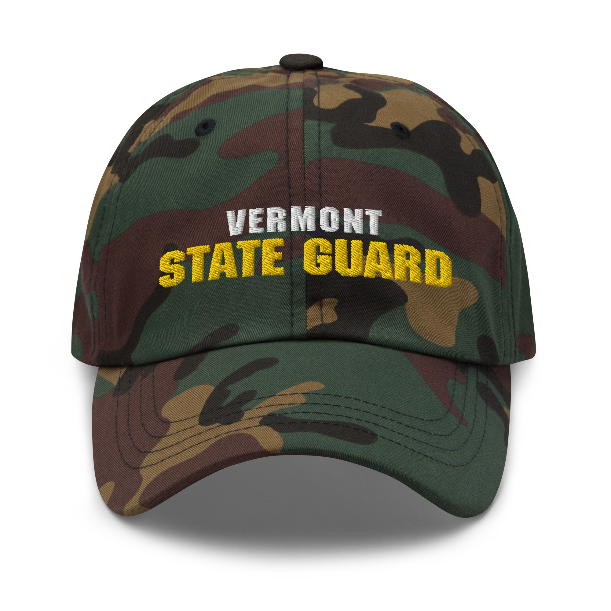 Introducing our premium Vermont State Guard Cap, a symbol of Vermont pride and tradition. This high-quality cap features “Vermont” in a bold 3D, with “State Guard” subtly highlighted beneath in gold. Crafted for comfort and style, this cap is perfect for anyone looking to celebrate their connection to the Green Mountain State. Whether you’re in The Vermont State Guard or a proud supporter, this cap honors the rich heritage of this incredible organization.