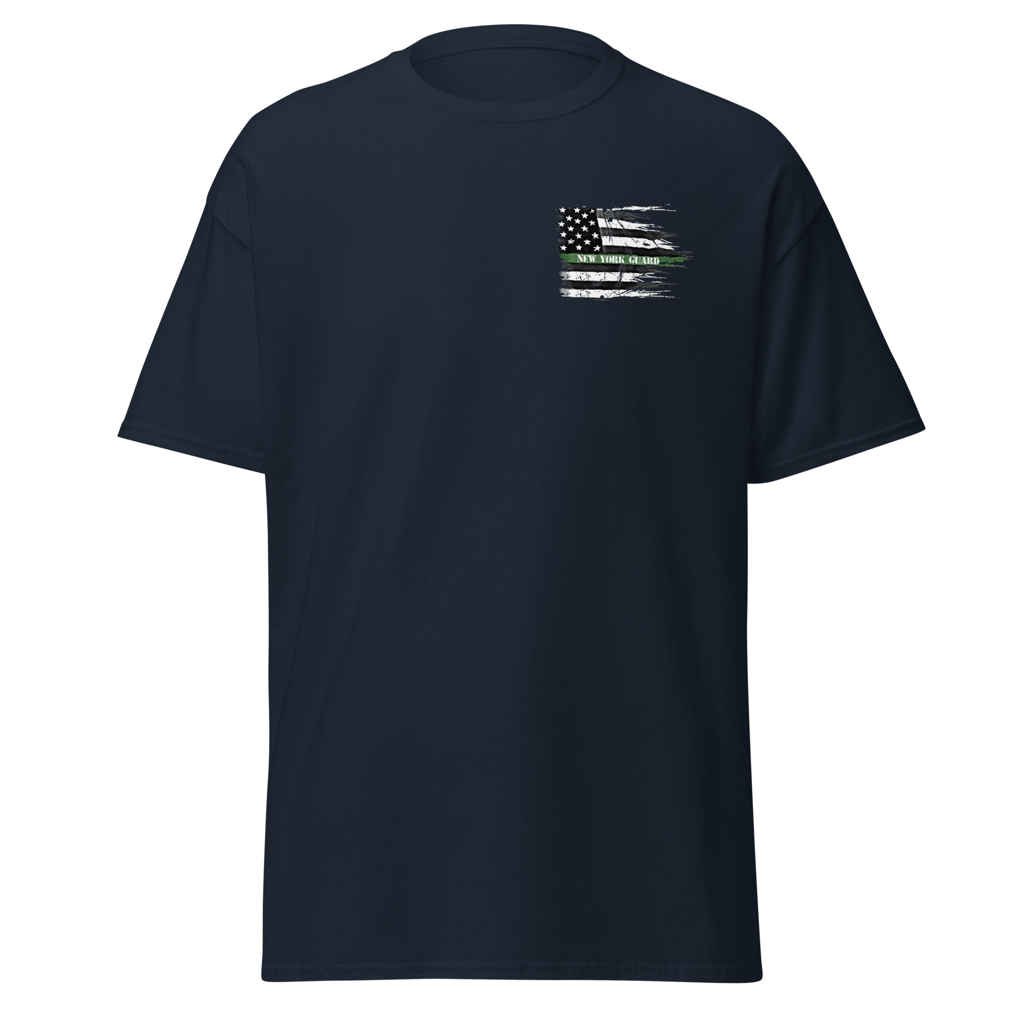 Honor the unwavering spirit of our New York Guard service members with the ‘Green Guard Valor Tee,’ a symbol of resilience, patriotism, and the enduring bond between the state and those who protect it. This shirt, featuring a US flag with a distinctive green line, paying tribute to the valor and sacrifice of our New York Guard heroes.