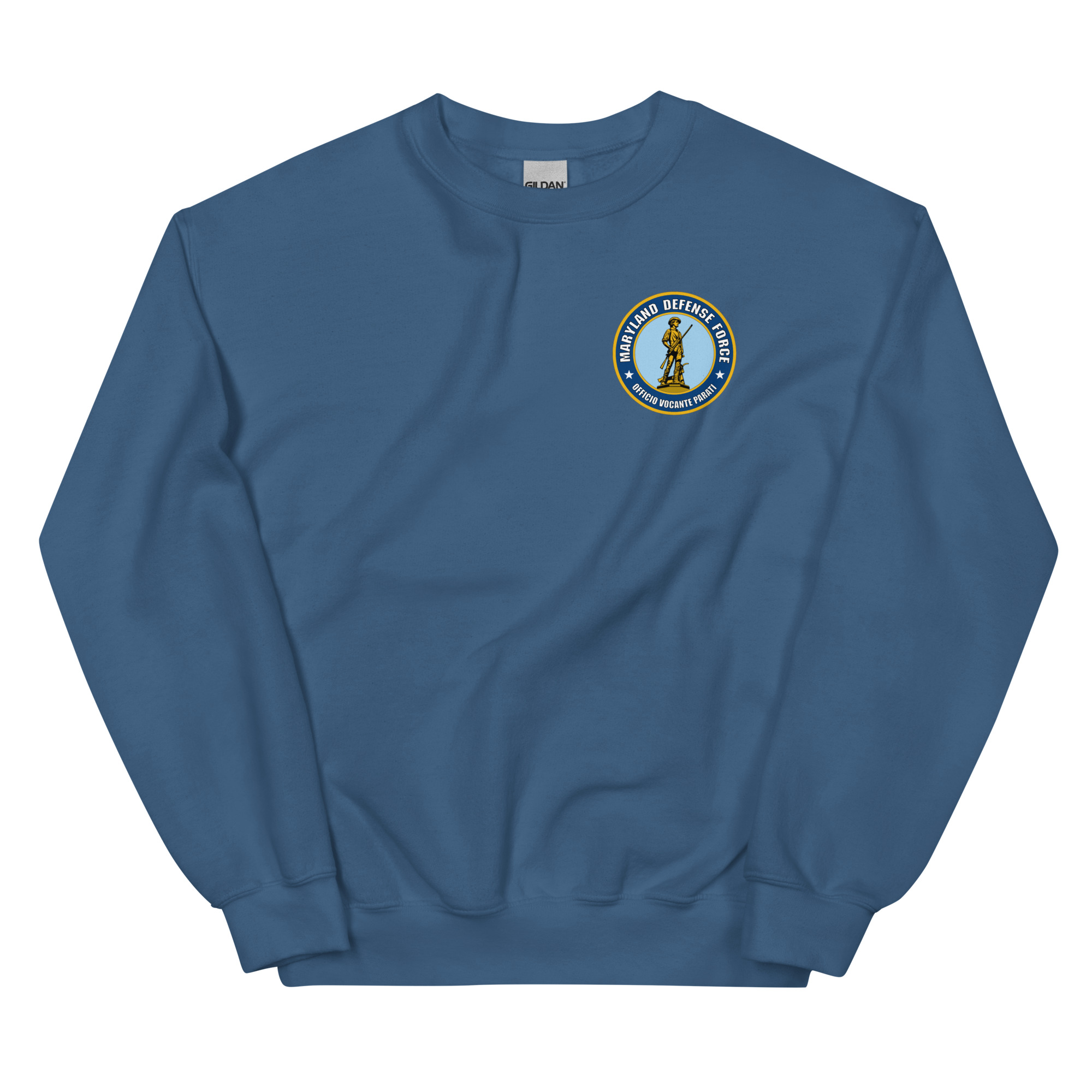 We designed a custom Maryland Defense Force Sweater featuring a Gold & Blue Minuteman Emblem with The Maryland Defense Force motto embedded into it.