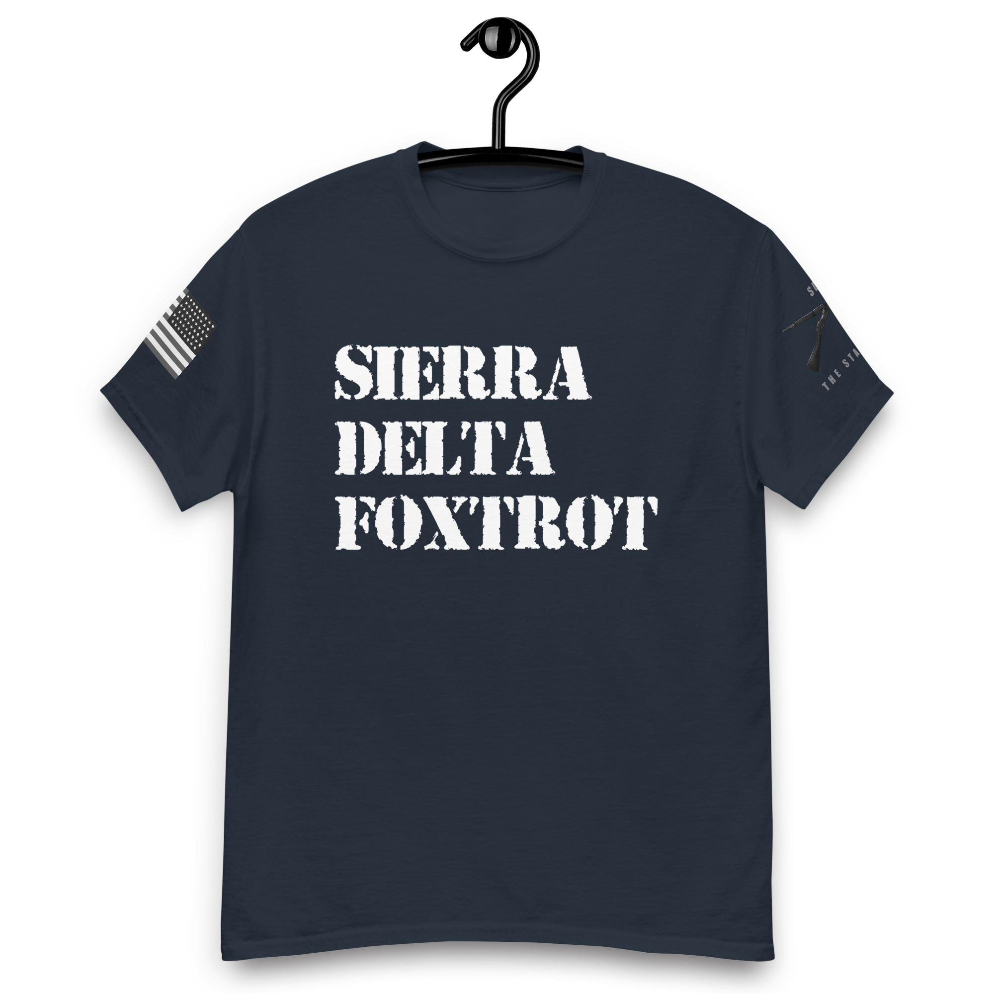 We designed a custom T-Shirt for every State Defense Force / State Guard soldier. This shirt features a front graphic entitled SDF, written in the US military phonetic alphabet. SDF, short for State Defense Force, reveals your pride in the branch of service you proudly serve. Also featured is a US Flag on the right shoulder and cross rifles on the left. Written above and below The Cross Rifles is ‘SDF’ and ‘The States Own’.