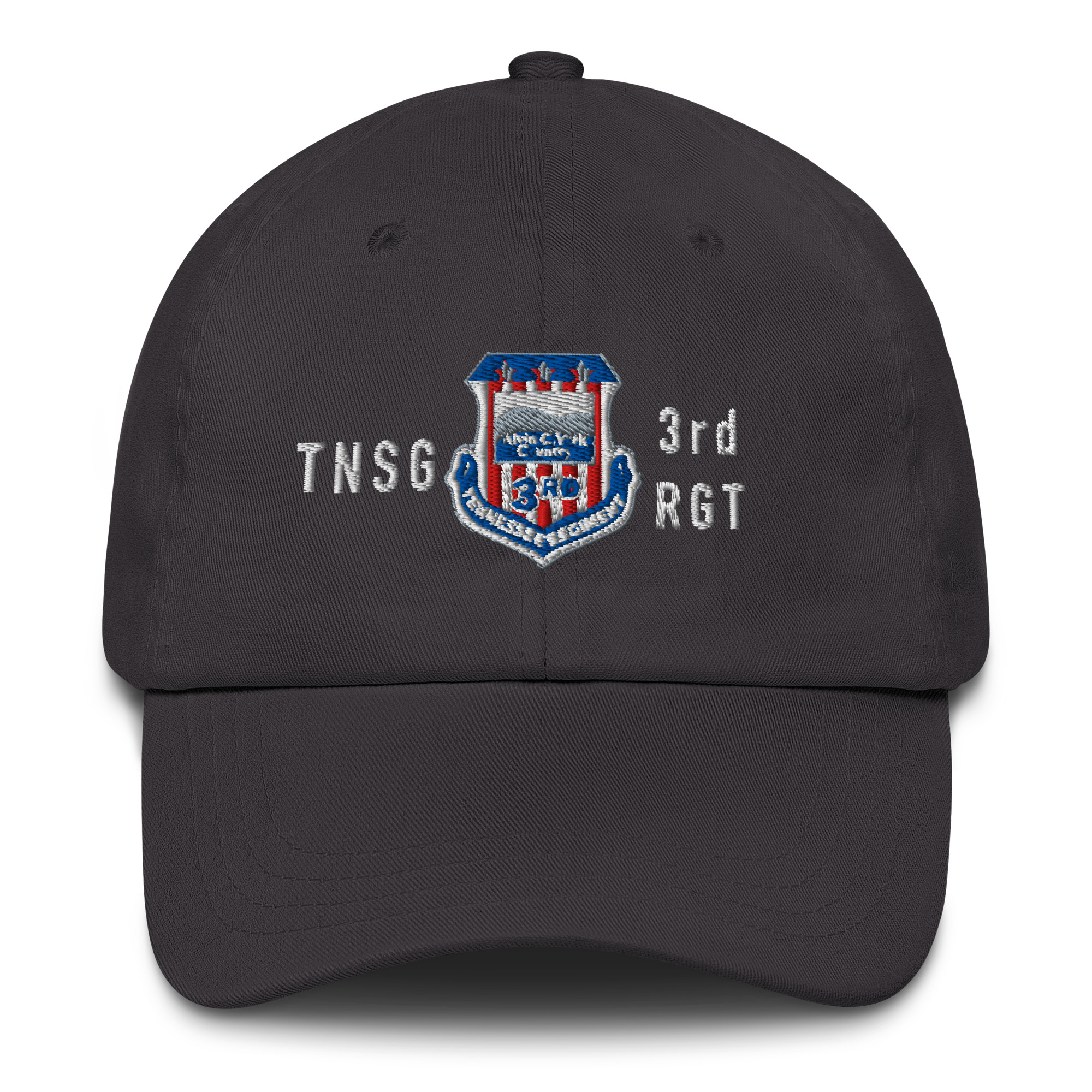 We designed a new custom cap for 3rd Regiment of The Tennessee State Guard. The Cap features the unit emblem of The 3rd Regiment embroidered into the cap.