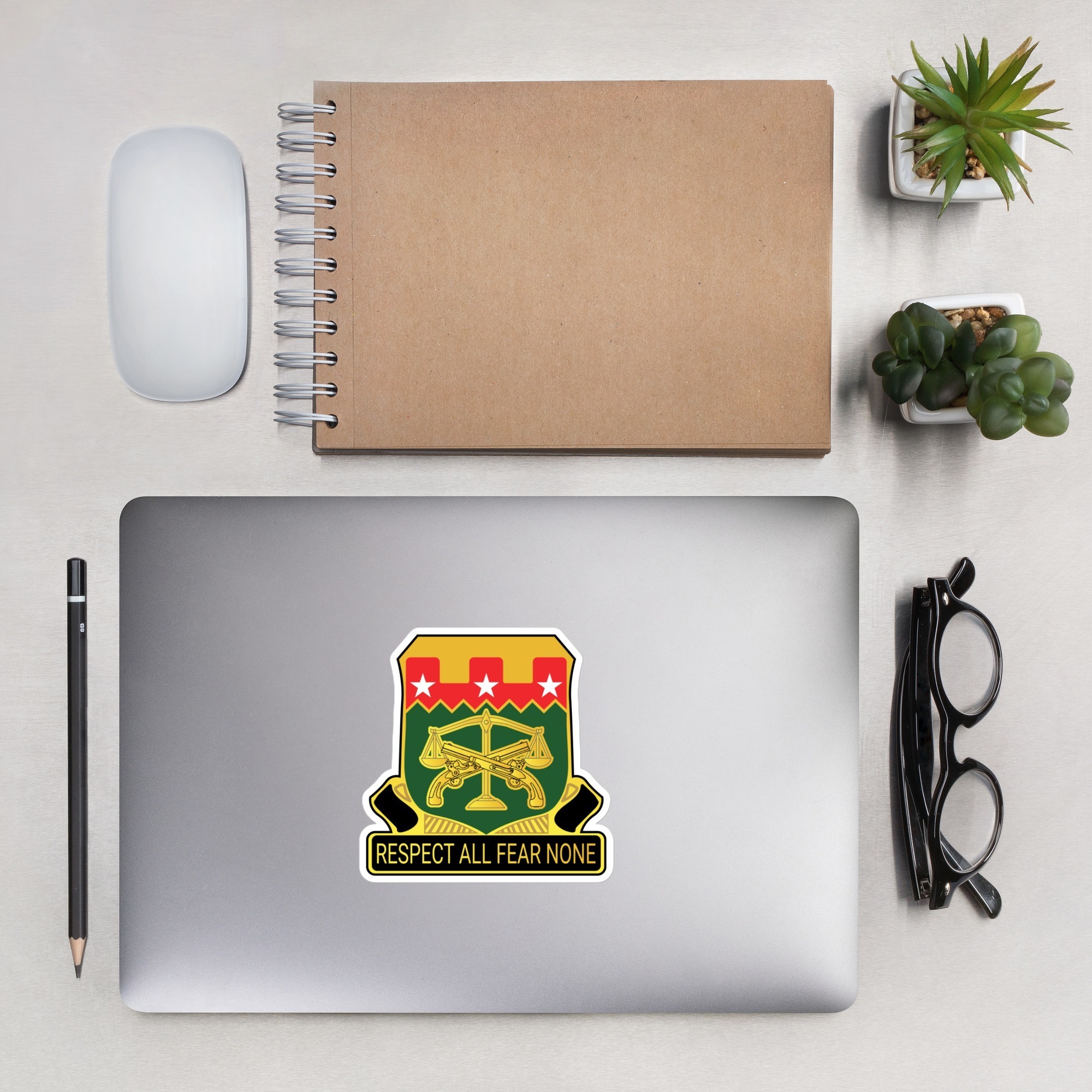 We developed custom stickers for The Tennessee State Guard 911 Military Police Battalion. These stickers are able to be placed on notepads, laptops, and even on vehicles.