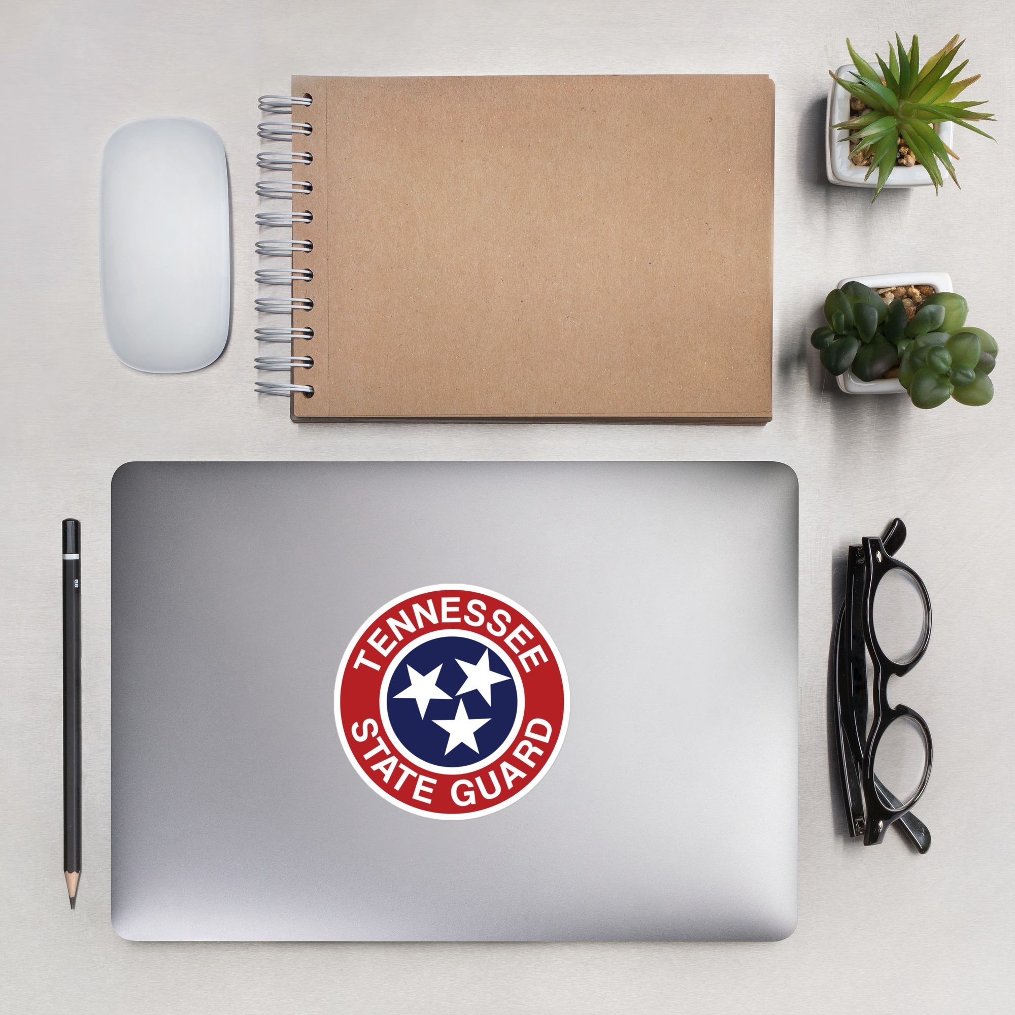 We developed custom stickers of The Tennessee State Guard Emblem. These stickers are able to be placed on notepads, laptops, and even on vehicles.
