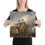 This Historical 1786 Painting of The Surrender of the Hessian troops at the Battle of Trenton by John Trumbull features the conclusion of The Battle of Trenton in which Colonel Johann Rall surrendered his Hessian troops to George Washington following the legendary Battle. This battle is one of the most revered Victories in American history as it was the most dangerous, daring and victorious battles in American History.