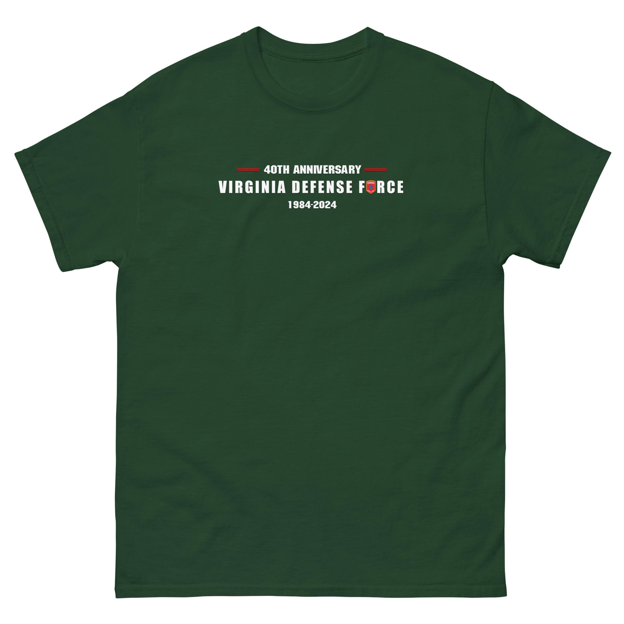 Celebrate four decades of service with the Virginia Defense Force 40th Anniversary T-Shirt. This commemorative design features “40th Anniversary” in bold ATROX army-style text, symbolizing strength and resilience. Below, “Virginia Defense Force” is proudly displayed, with the iconic Virginia Defense Force logo creatively incorporated into the “O” for a unique touch. The years 1984–2024 are prominently featured underneath, marking 40 years of dedication to the Commonwealth of Virginia. This shirt is a perfect way to honor the legacy and future of the Virginia Defense Force.
