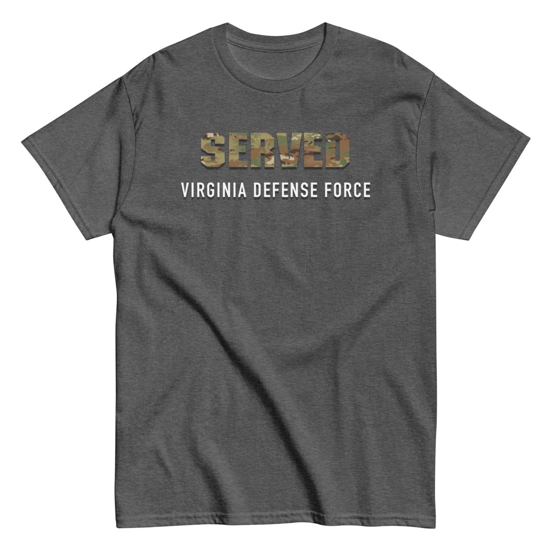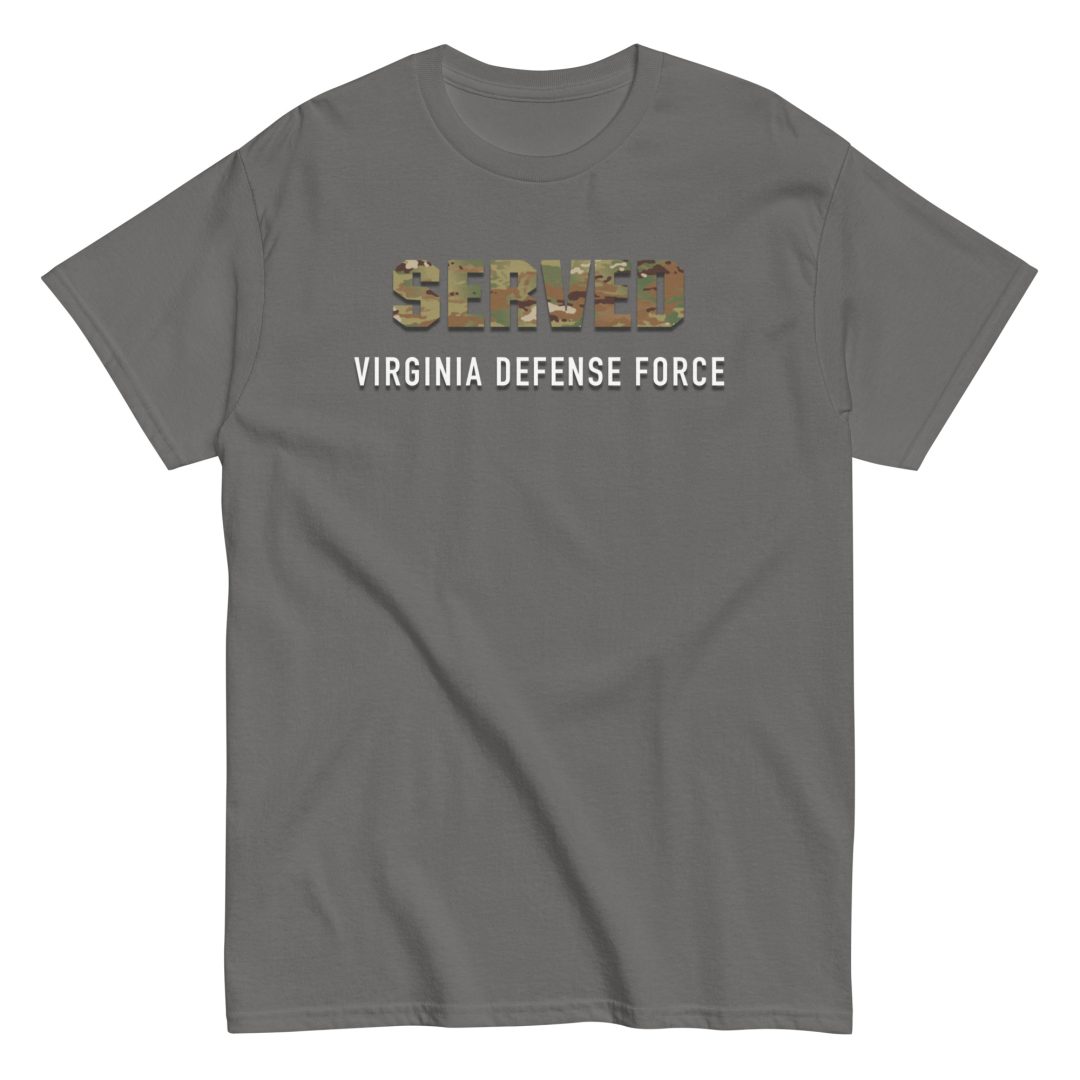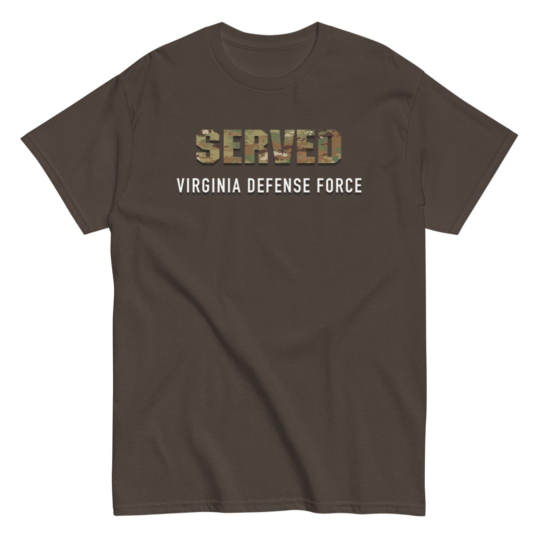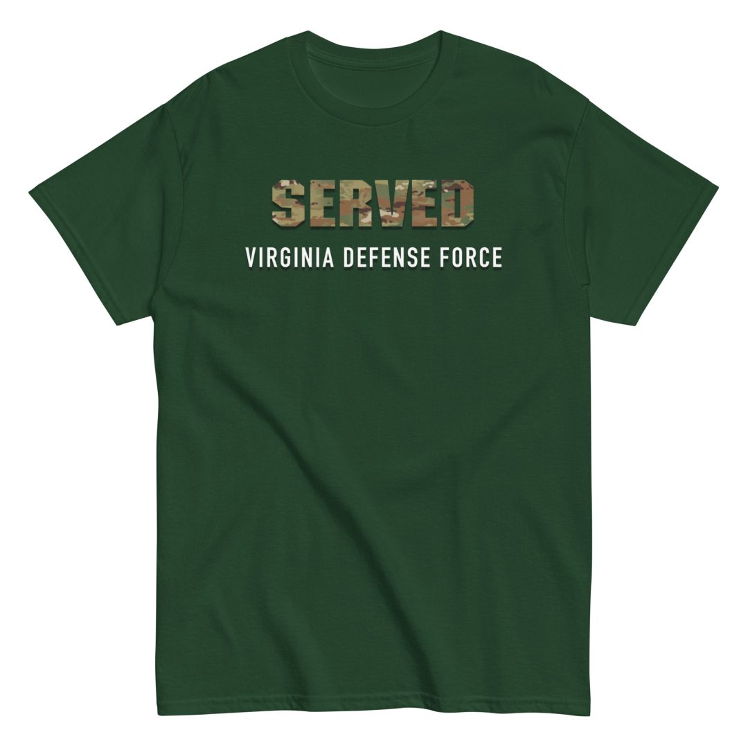 We made a custom T-Shirt for those who served in The Virginia Defense Force. The shirt features SERVED in OCP Pattern letters on the front of the shirt with Virginia Defense Force printed below.
